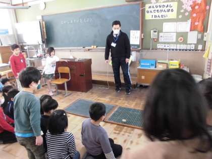 教頭先生に,巻き方・回し方を教えてもらって