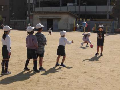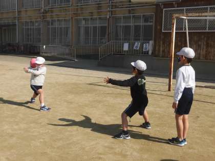 体育では,ボールを投げたり受け取ったりする練習をしました。