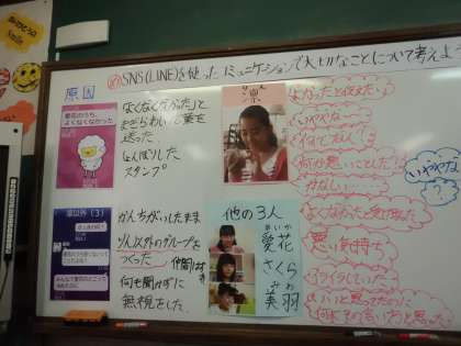 木曜日に,5年生2組で校内研修会を行いました。5年生は情報モラルの学習を続けてきましたが,そのまとめの学習として,「SNSを使うときに大切なことについて考えよう」をテーマに学習しました。相手意識をもったより良いコミュニケーションをとるためにどうしたらいいか,活発に意見を出し合うことが出来ました。