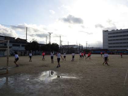 運動場からも体育館からも元気なかけ声が響いていました。