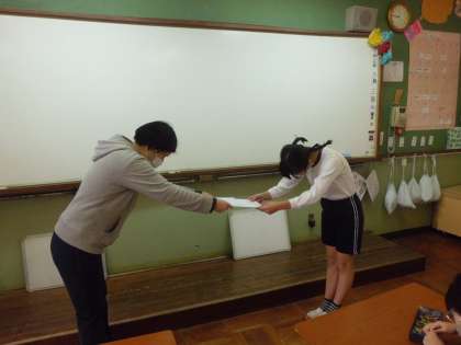 読書100冊を達成した子どもたちへ賞状をわたしました。みんな,良い姿勢で賞状を受け取っていました。