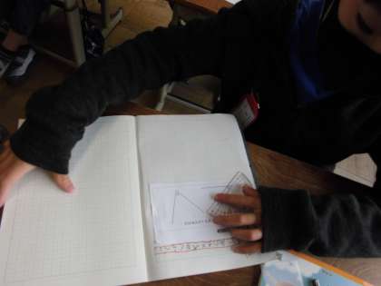 算数「角の大きさ」の学習で,分度器を使いました。