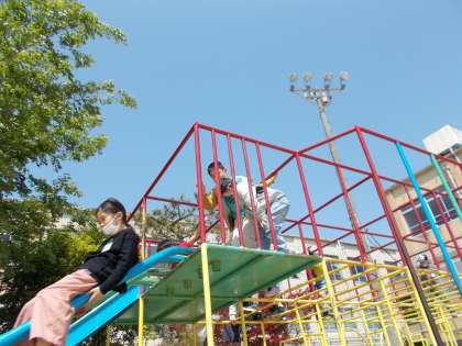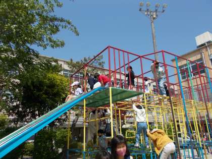 休み時間になると,友だちと誘い合って,遊ぶ姿が見られます。総合遊具も一番上まで上がれるようになり,上手にすべり台を滑っておりている人もいます。