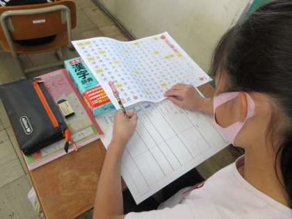 写真はこれまでに習った漢字と,4年生で習う漢字の中でその部分の漢字があるものを,探しているところです。