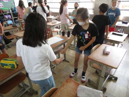 学活の時間に「ほめほめじゃんけん」をしました。