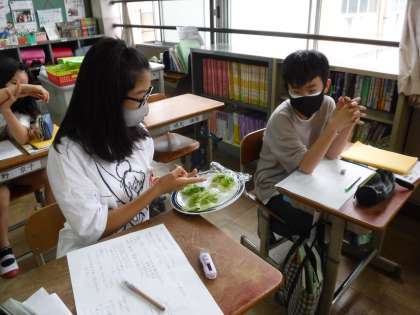 生野菜とゆで野菜,いためた野菜を見比べ,