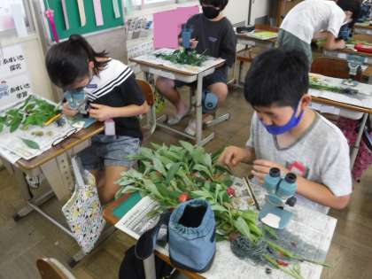 すみずみまで染まった様子を観察し,楽しんでいる姿があちこちで見られました。