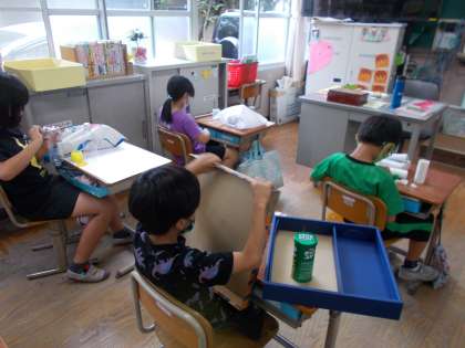 みんなで遊んでみたいものを自分で決めて,計画を立ててきました。でき上がりの図をかいたり,必要な材料を準備したりしてきました。