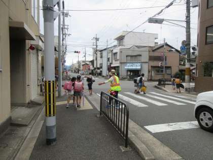 昨日の防犯プログラムに続いて,今日は横断歩道の渡り方などの交通ルールの確認をしました。「手を挙げて」だけでなく,「運転手の方とアイコンタクトをしてから渡る」ことがポイントだそうです。南警察署の方のお話をしっかりと聞いて,安全に下校しました。