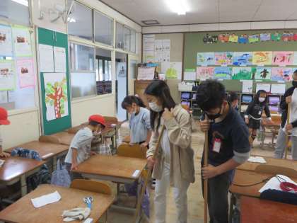 「掃除って楽しいなあ。」という1年生。理由を尋ねると,「6年生と一緒だから。」「6年生がやさしく教えてくれるから。」「教室がきれいになるとうれしいから。」ときいていて嬉しくなる感想をたくさん発表してくれました。