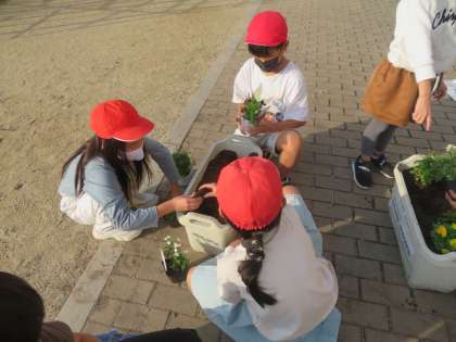通学路が明るく,花でいっぱいになるように心を込めて植えました!