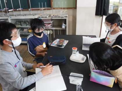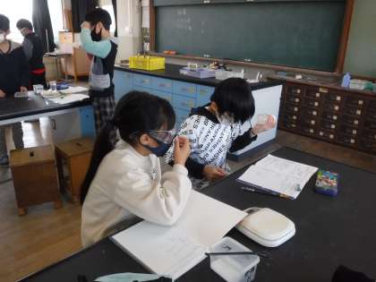 粒が見えなくなっても,水の中には存在しているので,重さは変わらないということを確かめました。