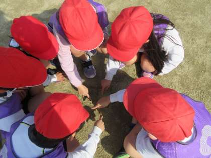 寒い日が増えてきましたが,子どもたちは元気一杯にボールを追いかけています。練習を重ねるごとに,パスやシュートが上手になってきました。作戦タイムでは,チームで地面に図をかいてポジショニングを考えていました。