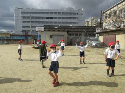 ゆっくりかけ足では,3分間で運動場を何周できるかをめあてに走りました。スピードを競うのではなく,自分のペースで走ります。記録を数えているペアの友だちの,一生懸命に声援を送っている姿が微笑ましかったです。