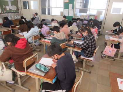 計算検定を行いました。1・2・3年生の問題はすらすら解いている様子でした。結果が楽しみです。