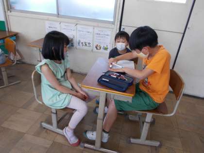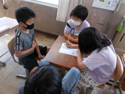 係ごとに写真を撮っ,そのあとは,係で活動内容について相談をしました。