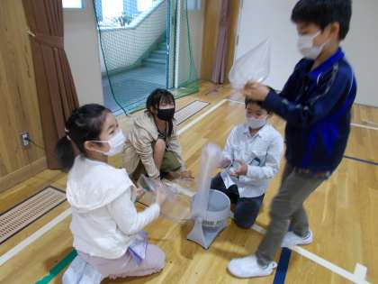 ふくろに空気を入れて,風にのせてみると・・・