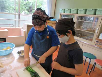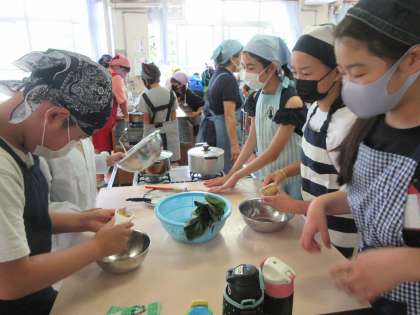 慣れない手つきながらも,グループで協力し合いながら楽しく活動に取り組む様子が見られました。