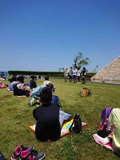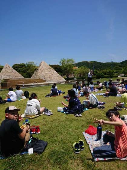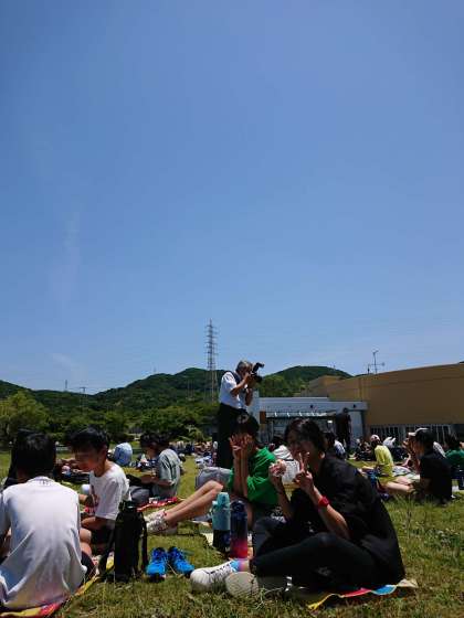 青空のもとで食べるお弁当は格別です。保護者の皆様、朝早くからご準備ありがとうございました。
