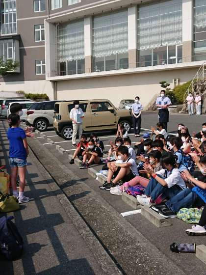 退館式の様子です。お世話になった『南淡路休暇村』の方にお礼の気持ちを伝えました。