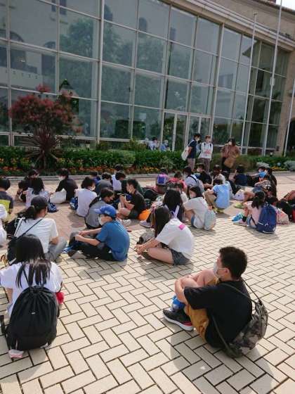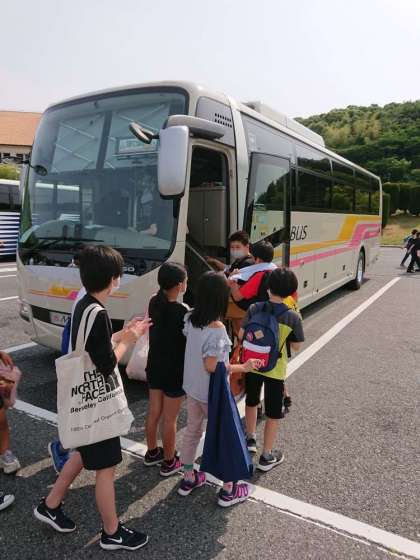 淡路サービスエリアを出発しました。学校到着は16時50分ごろの予定です。みんな元気です。