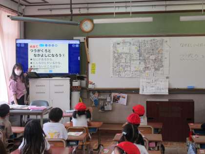 みんなの通学路を通って警察署や公園などの場所を確認し,公園にはどんなものがあるのか調べました。遊具の他にも可愛い草花や虫なども発見していました。
