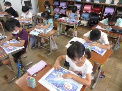 算数科は「100をこえる数」の単元です。工夫して数えたり、その数について調べ、考えを深めたりと、楽しみながら学習を進めています。