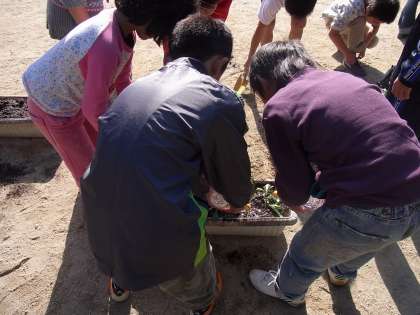 11月16日花いっぱい運動とたてわり遊びがありました。