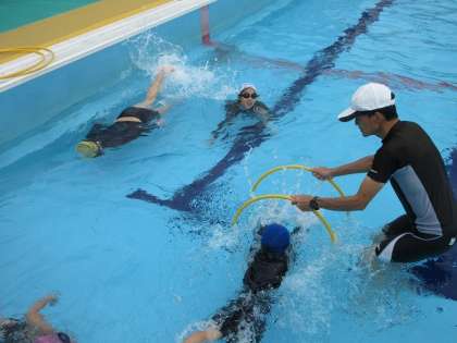 今週の体育の学習(プール)では、力を抜いて水に浮いたり進んだりする内容に取り組んでいます。「フラフープの中を静かに進んでみよう…」と、チャレンジしました。