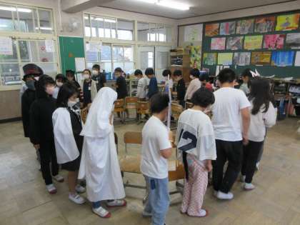 国語の「はんで意見をまとめよう」の単元で話合いを進めていた「ハロウィンパーティー」を学活の時間に行いました。