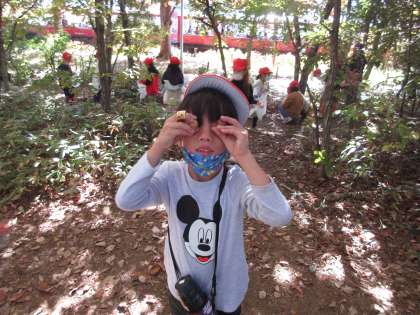 色々な形のどんぐりを見つけたり,赤や黄の葉っぱを拾ったり