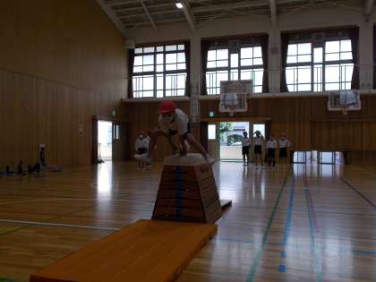 久しぶりのとびばこでしたが、こわがらずに思い切って跳べていました。開脚とび・かかえこみとびを中心に練習をしました。