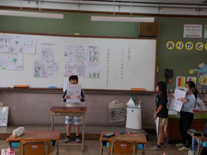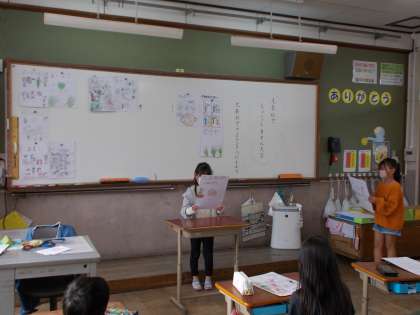 九条ねぎについて調べてきて、自分の一番じまんしたいことをまとめて発表し合いました。「ぬめり」「甘さ」「歴史」「育て方」・・・などたくさんのじまんがありました。