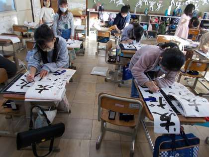 みんなとても集中して学習をしていました。学年や名前もいつもとは違い、大きく書くことが難しかったようでした。