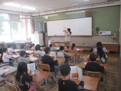 1年生の教室に,「ただしいすわりかた」の図がはってあります。「グー・ペタ・ピン・サッ」。元気でないと姿勢も悪くなるし,姿勢が悪くなると視力も悪くなります。毎日いい姿勢で学習できるようにがんばりましょうね。