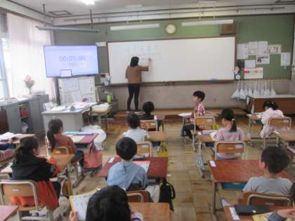 「先生,たしざんできるよ〜。」「ひきざんもできる!」そんな声が教室から聞こえてくる,とても頼もしい1年生ですが,最初は少しずつ学習を進めていきます。今日は,1から5までの数字を正しく書けるようになる練習をしました。何事も最初が肝心。いつも丁寧に書けるように,しっかりと練習しましょうね。