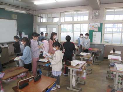 4年生までは「外国語活動」でしたが,5年生からは「外国語科」になり,年間70時間英語の学習をします。今日は,友達と互いに自己紹介をしあう学習をしました。