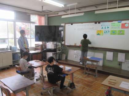 3組では,算数「かたちやもようをつくろう」の学習を見ていただきました。正方形や長方形などのいろいろな形を使って,どうやって並べればどんな形ができるかを見つけていきます。実際に操作しながら,形に関する理解を深めていました。