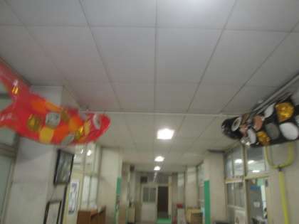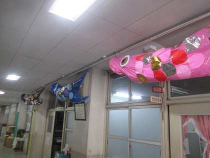 本館の職員室前の廊下にも,鯉のぼりが泳いでいます。5月の間,子どもたちを見守っています。