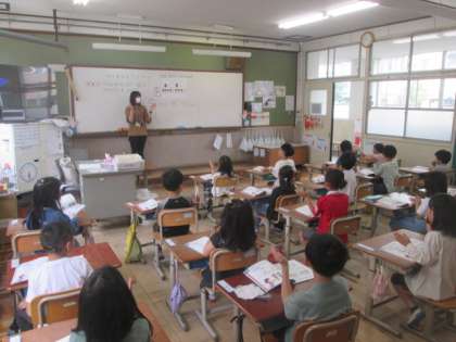 拍を感じ取りながら,体を動かし,リズムの特徴を感じ取って表現したりする学習です。今日は,リズムに合わせて友達の名前を呼びあう学習をしました。手をたたいてリズムを取りながら,「〇〇さん」と順に言っていきます。呼ばれた子は,ちょっとはずかしそうに,うれしそうに,「はあい」と返事をしていました。