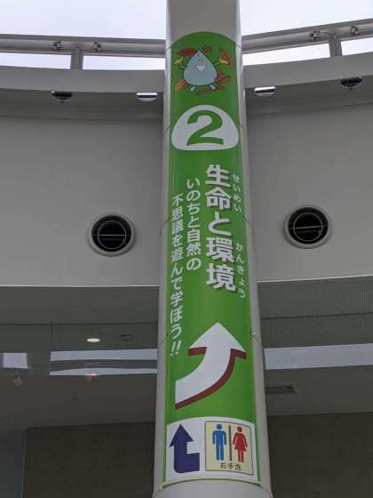 プラネタリウムの見学を終えて、これから科学館の中を見学します。科学館は3つのテーマで構成されています。「宇宙と地球」「生命と環境」「科学技術と人間」です。どんな展示があるのか楽しみです。