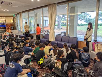 17時すぎに慶野松原荘に到着しました。まずは入館式をして、宿舎の方にご挨拶をしました。明日の朝までですがよろしくお願いします!
