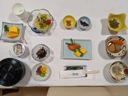 昨日の夕食も豪華でしたが、今朝の朝食も盛りだくさんのごちそうです。しっかり食べて活動に備えます。
