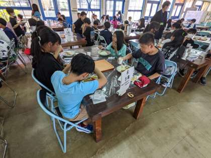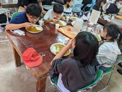 昼食は、ミルクカレーです。おかわりはできませんが、ついでいただく時に「大盛り」や「少なめ」が選べます。