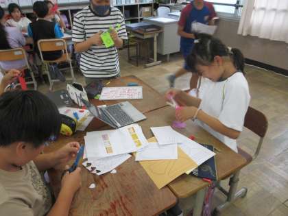 5年生の九条「つながり」学習では、現在「夢がキラッとプロジェクト」に取り組んでいます。6月14日の授業では働くことの大切さや大変さを学ぶために、各班ごとにケーキ屋になりきって、模擬的に運営をしてみました。表計算ソフトを用いながら、光熱費や人件費などの運営費を差し引いて、その中で利益を出すためにはどのように仕入れ、製造、販売したらよいのかなどを班ごとに深く思考することができていました。限られた時間のなかで運営を行う難しさや、やりがいを実際に感じることができた時間だったように思います。