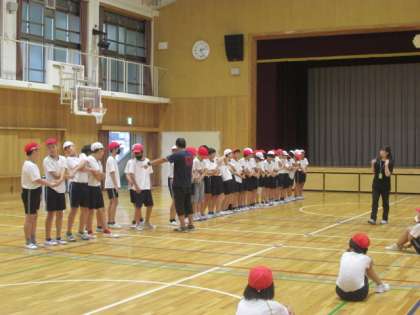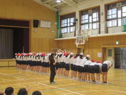 5校時に,体育館で学年合同の練習をしました。曲に合わせて,少しずつ動きがそろってきています。今年度は,昨年度までと違って全校児童が一堂に会する運動会です。たくさん1年生から5年生までの人たちや見に来て下さるたくさんのおうちの人たちに,一生懸命で凛々しい姿を見せられるように,高学年らしい力強さを見ていただけるように,練習を重ねています。本番での成功を信じて,これからもみんなで頑張っていきます。