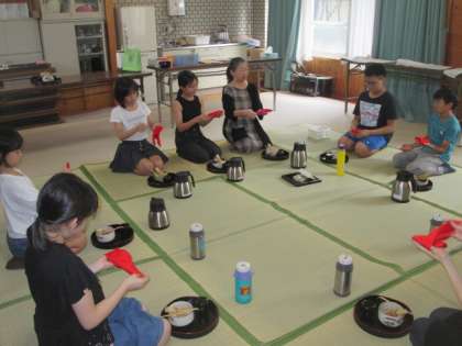 茶道の基本動作や礼儀作法についてなど,落ち着いて,それでいて真剣な空気の中,子どもたちは茶道の世界に触れていました。