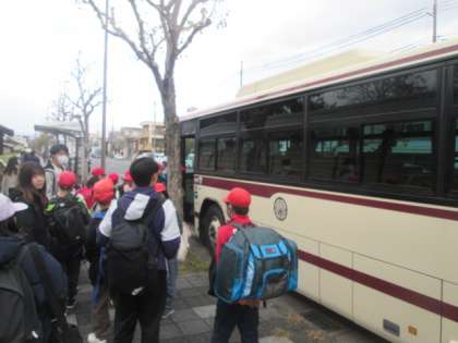 九条大宮からバスに乗って,いよいよ出発です。学校から九条大宮まで歩く間,雨がやんでいたのでよかったです。