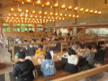 花背山の家の食堂でいただく食事も,2回目です。食堂の使い方にもすっかり慣れて,スムーズに準備や片づけもできました。しっかり食べて今日の活動に備えます。