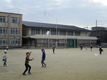 一昨日は,地域の方にお正月の遊びや昔の遊びを教えていただきましたが,今日は,運動場で,たこあげをしました。子どもたちは,できるだけ高くあげようと,一生懸命走っていました。上手な子は,とても高くあげることができていました。曇り空で寒い日でしたが,子どもたちは体がぽかぽかしていたことでしょうね。冬ならではの遊びですね。
